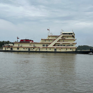 Some folks from Red Wing might recognize this one, it’s the Corps of Engineers tug that was docked at our levee a couple of years ago, offering free tours. I was lucky enough to step aboard, and let me tell you, it’s a beautiful vessel inside and out. So it was a treat to spot it again, this time hard at work along the Tennessee shoreline, laying tiles along the Mississippi banks like a pro.