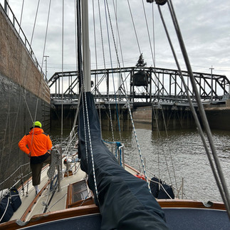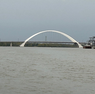 We began the day threading our way through a gauntlet of bridges, four in total, each spanning 60 to 64 feet, and one lock, all within the first 90 minutes. It was a high-stress, high-coordination morning. At Lock & Dam 15, the lock master was a marvel of efficiency. He opened the gates, locked us through, signaled the highway to close, and swung the traffic bridge open. I’m fairly certain he even phoned ahead to the railroad swing bridge, which opened just as we approached. Whether it was stellar service or sheer luck, it felt like the river was rolling out a red carpet.