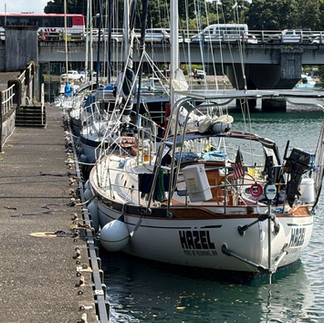 At the dock, we filled Hazel’s tanks with two hundred gallons of potable water. Then came the diesel problem. We had seven jerry cans tied to the deck, and the plan was to Uber them to the gas station. Before we began, we helped a commercial fishing boat dock in a tight spot. The fishermen were kind and appreciative. After some lively conversation with Peter about fishing, they offered to take their truck, which had a diesel tank and pump for servicing their fleet, to the gas station. They filled it and then came alongside Hazel to pump the diesel directly into our tanks.